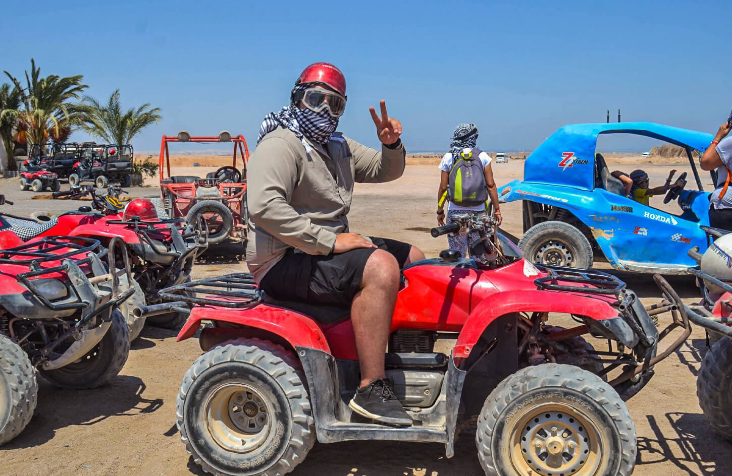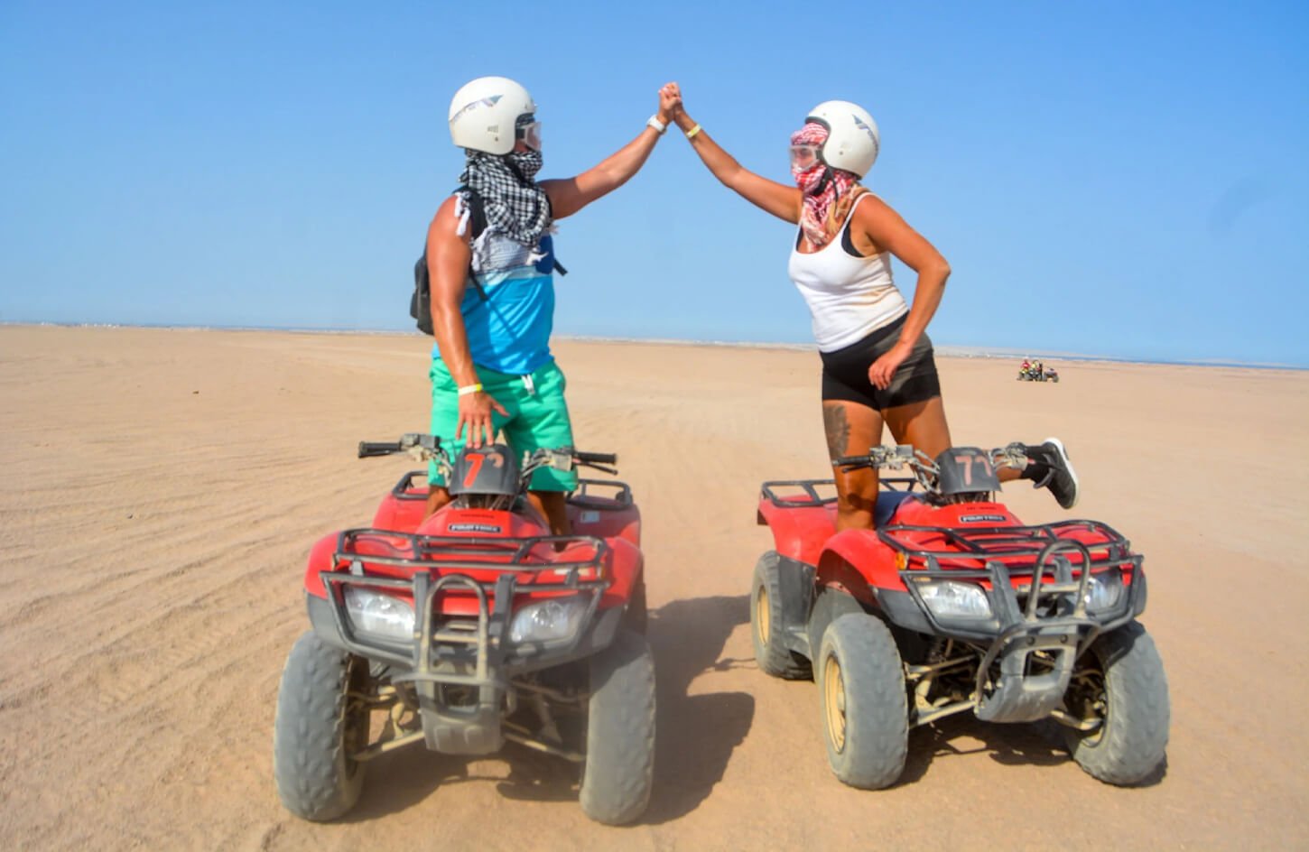 After this enriching cultural encounter, hop back on your quad bike for the thrilling return journey, racing through the desert one last time. As the adventure winds down, your guide will ensure a smooth transfer back to your hotel, leaving you with incredible memories of Hurghada’s ultimate desert experience.